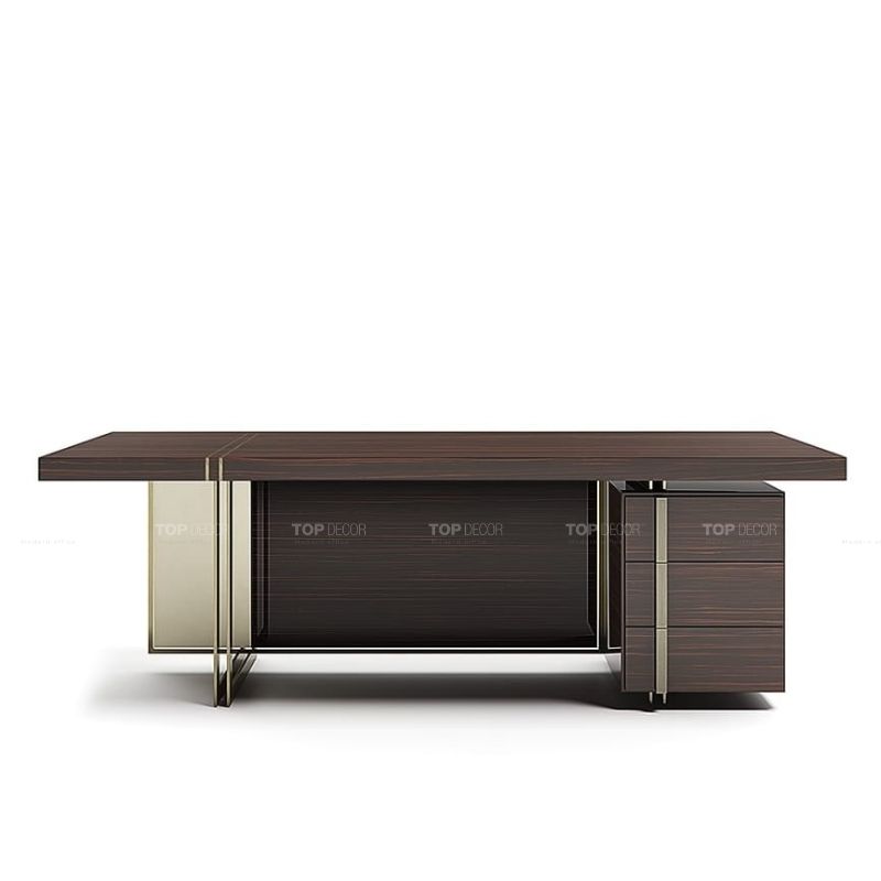 Bàn lãnh đạo được thiết kế dành riêng cho các vị trí cao nhất như chủ tịch hoặc tổng giám đốc, thường có kích thước lớn và kiểu dáng bề thế. Chất liệu cao cấp như gỗ óc chó, veneer gỗ tự nhiên được sử dụng để tôn lên vẻ sang trọng và quyền uy tối cao. Đây không chỉ là nơi làm việc mà còn là biểu tượng của sự thành công, khẳng định vị thế của người đứng đầu trong tổ chức.