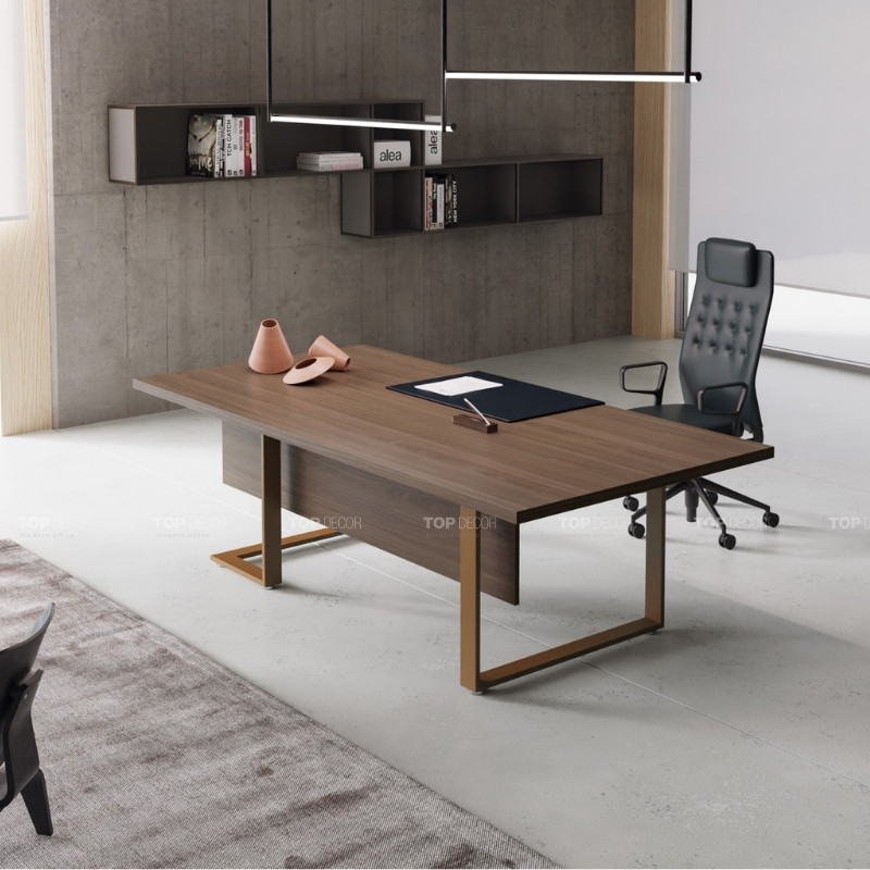 Trong khi đó, bàn với khung chân sắt mang lại vẻ hiện đại, chắc chắn và độ bền cao. Sự kết hợp giữa mặt bàn gỗ và khung sắt tạo nên một thiết kế vừa tinh tế vừa mạnh mẽ, đáp ứng nhu cầu của những văn phòng muốn hướng đến phong cách trẻ trung, năng động. Tùy thuộc vào ngân sách và mục đích sử dụng, bạn có thể cân nhắc giữa hai loại chất liệu này để tìm ra sự lựa chọn phù hợp nhất.